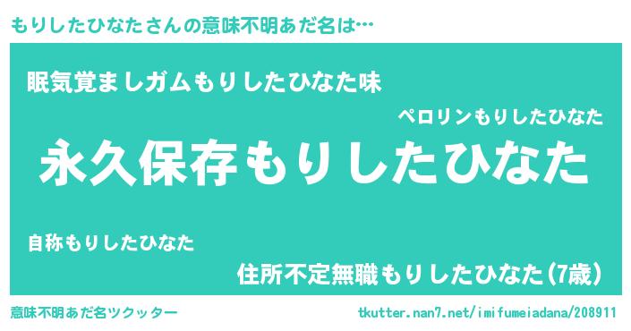 | 男性向けラノベタイトル風あだ名 | 『もりしたひなたという概念が存在しない退屈な世界 』 |