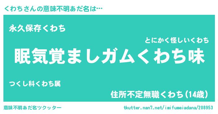 | 欧米人風あだ名 | 『ダニエルくわち』『ダルビッシュくわち』 |