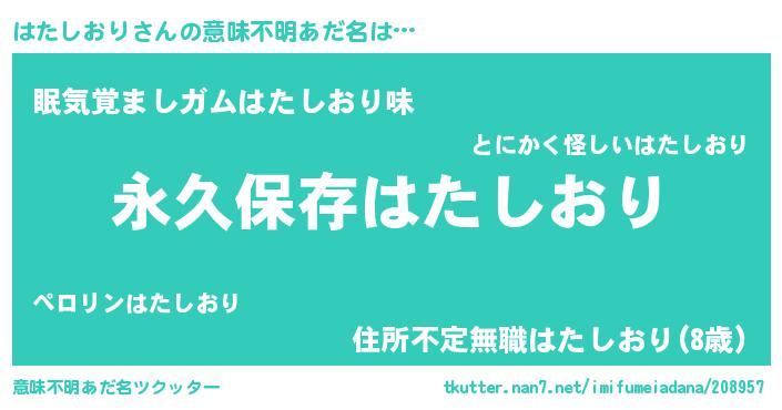 | ヘコむあだ名 | 『はたしおり(小並感)』『はたお』 |