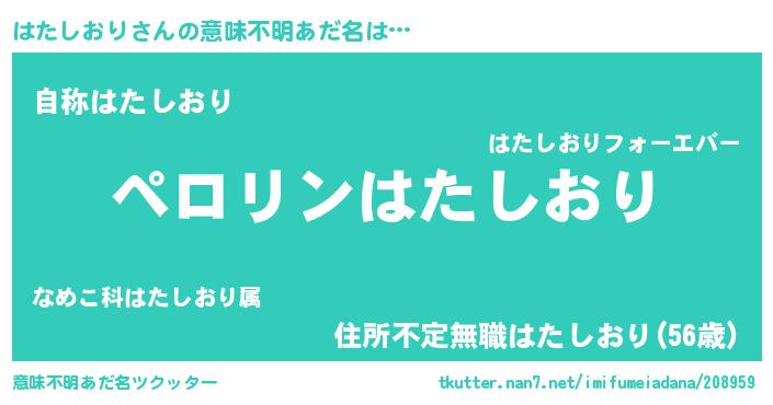 | 男性向けラノベタイトル風あだ名 | 『ハタシオリアートオンライン』 |