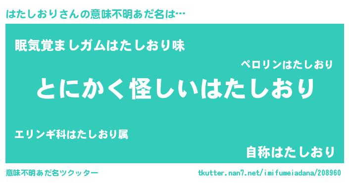 | 胡散臭い通販商品みたいなあだ名 | 『信頼と実績のサプリメント…その名も「はたしおり」』 |