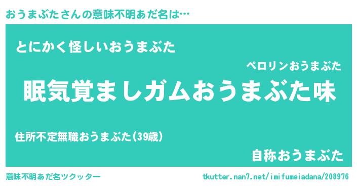 | 男性向けラノベタイトル風あだ名 | 『おうまぶたに滅ぼされるだけの簡単なお仕事です』 |
