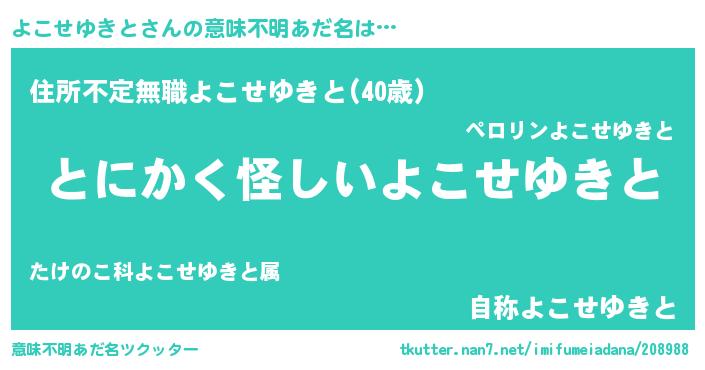 | 料理風あだ名 | 『よこせゆきとの豆乳スープ』 |