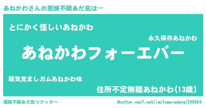 | ポケモン風あだ名 | 『アネカダネ』『ヒアネカワ』 |