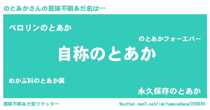 | 女子向けラノベタイトル風あだ名 | 『のとあかなんてお断りですっ。』 |