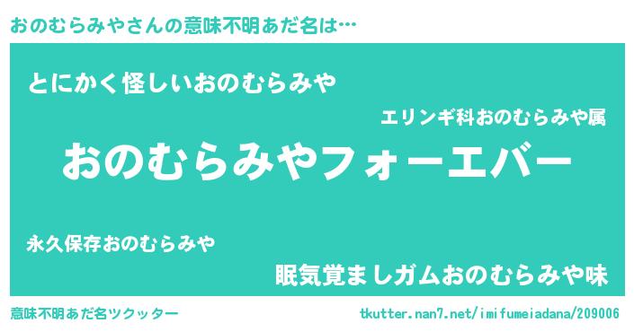 | 胡散臭い通販商品みたいなあだ名 | 『世界が平和になる高級そうな絵画…その名も「おのむらみや」』 |