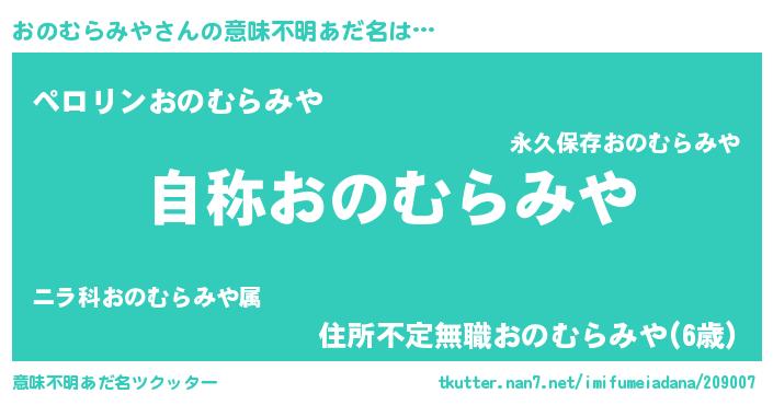| ヘコむあだ名 | 『おのもー』『おのむらみや(苦笑)』 |