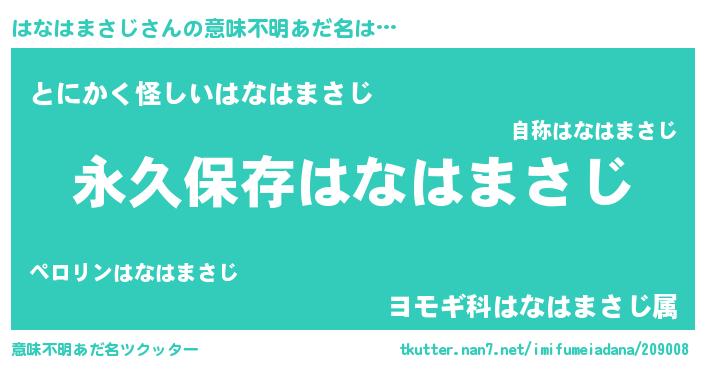 | ヘコむあだ名 | 『はなはまさじ(小並感)』『はなを』 |
