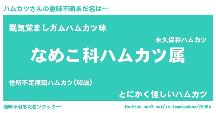 | ヒーロー風カッコイイあだ名 | 『愛の使者ハムカツ』『暗黒騎士ハム』 |