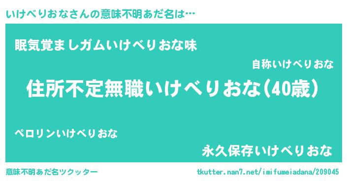 | ヘコむあだ名 | 『いけべりおな(笑)』『いけにー』 |
