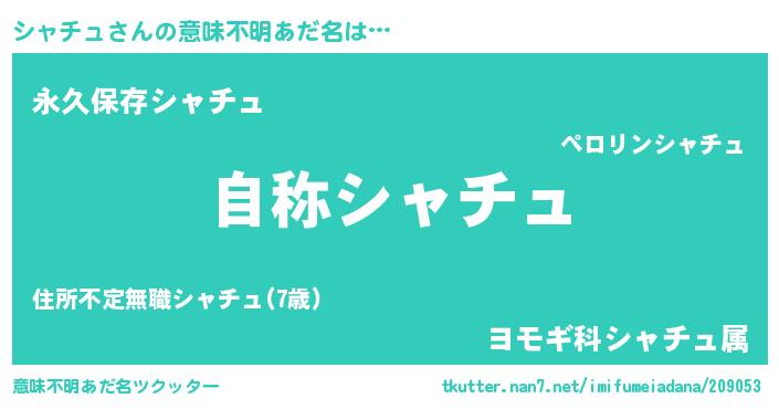 | ヘコむあだ名 | 『シャチュ(苦笑)』『シャにゅー』 |