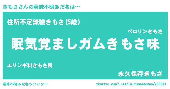 | 女子向けラノベタイトル風あだ名 | 『死神きもさの再婚』『きもさの契約王妃』 |