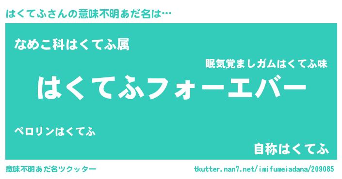| 女子向けラノベタイトル風あだ名 | 『はくてふの雑貨屋さん』『闇のはくてふ』 |