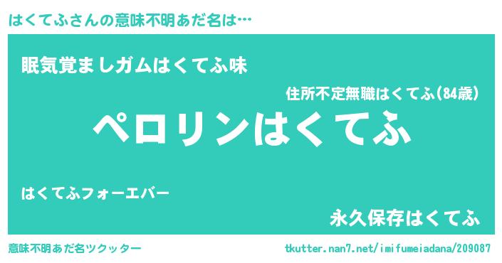 | ヘコむあだ名 | 『はくもー』『はくてふ(笑)』『豆乳』 |