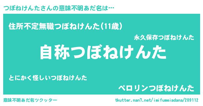 | 男性向けラノベタイトル風あだ名 | 『Re:つぼねけんたから始める異世界生活』 |
