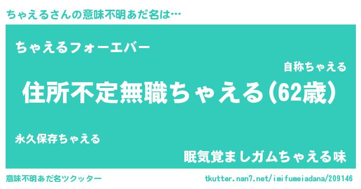 | ヘコむあだ名 | 『なまこ酢』『ちゃえる(震え声)』 |