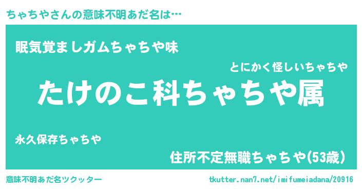 | 料理風あだ名 | 『ちゃちやごはん』 |