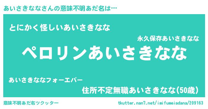 | 胡散臭い通販商品みたいなあだ名 | 『必ず成功するブレスレット…その名も「あいさきなな」』 |