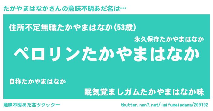 | 男性向けラノベタイトル風あだ名 | 『たかやまはなかに滅ぼされるだけの簡単なお仕事です』 |