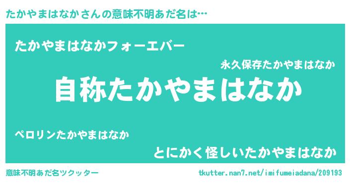 | 肩書あだ名 | 『たかやまはなか閣下』 |