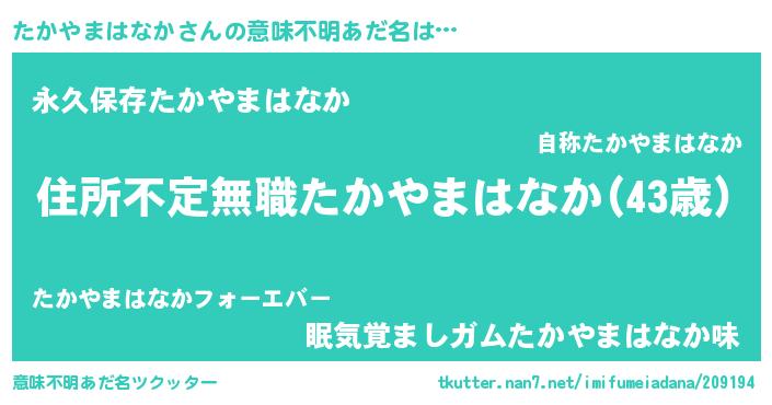 | 欧米人風あだ名 | 『ダレノガレたかやまはなか』 |