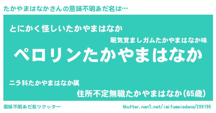 | 胡散臭い通販商品みたいなあだ名 | 『必ず成功する水晶球…その名も「たかやまはなか」』 |