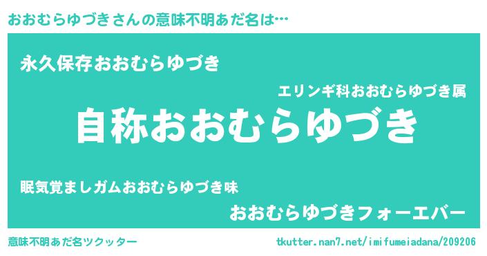 | ヘコむあだ名 | 『おおむらゆづき(遠い目)』『豆乳』 |