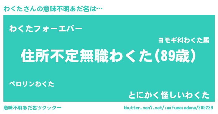 | 胡散臭い通販商品みたいなあだ名 | 『世界中を虜にした世界で10本だけ現存している希少なブランデー…その名も「わくた」』 |