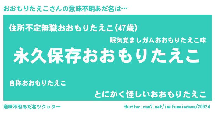 | ヘコむあだ名 | 『おおもりたえこ(苦笑)』『おおっ子』 |