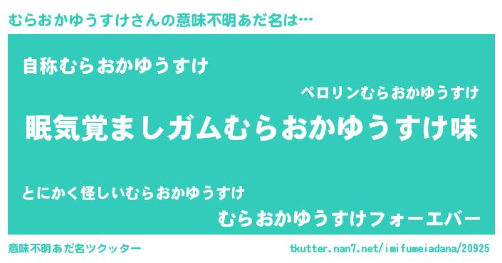| 女子向けラノベタイトル風あだ名 | 『むらおかゆうすけ恋絵巻』 |