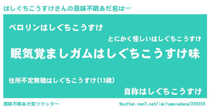 | ヒーロー風カッコイイあだ名 | 『正義の使者はしぐちこうすけ』 |