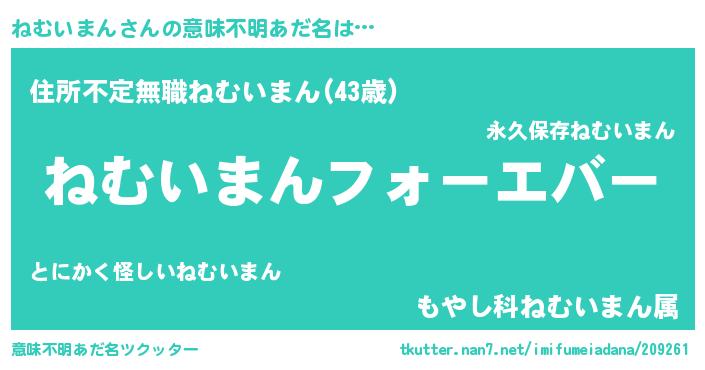 | 欧米人風あだ名 | 『ねむいまんクリステル』 |