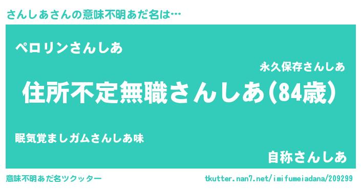| 男性向けラノベタイトル風あだ名 | 『この素晴らしい世界にさんしあを!』 |
