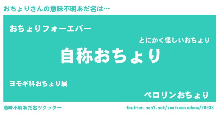 | ヒーロー風カッコイイあだ名 | 『究極戦士オチョリ』『スーパーオチョリ』 |