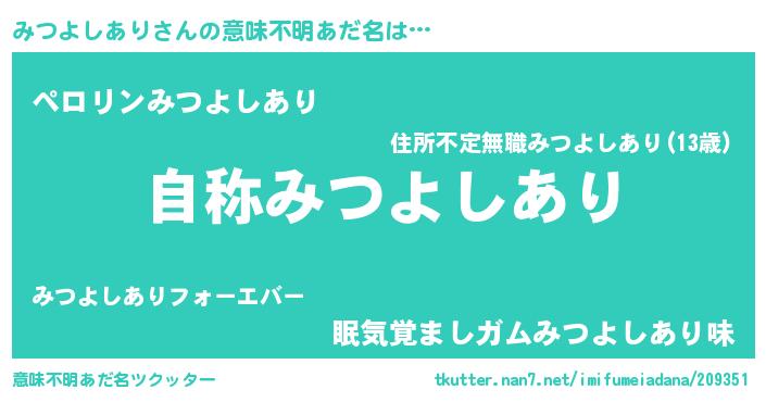 | 肩書あだ名 | 『みつよしあり閣下』『みつよしありCEO』 |