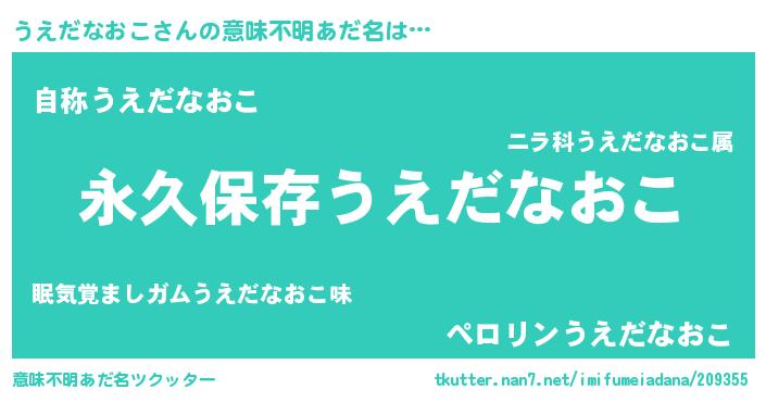 | 男性向けラノベタイトル風あだ名 | 『うえだなおこという概念が存在しない退屈な世界 』 |