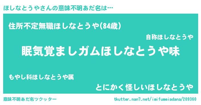 | 欧米人風あだ名 | 『ほしなとうや・ステッグマイヤー』 |