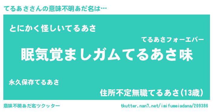 | 欧米人風あだ名 | 『ダニエルてるあさ』『ウサインてるあさ』 |