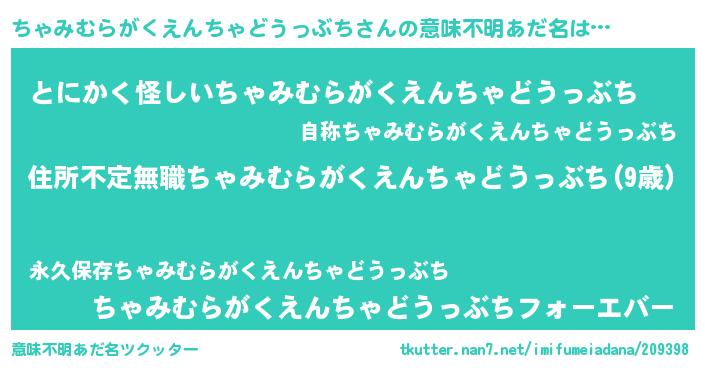 | 男性向けラノベタイトル風あだ名 | 『この素晴らしい世界にちゃみむらがくえんちゃどうっぶちを!』 |