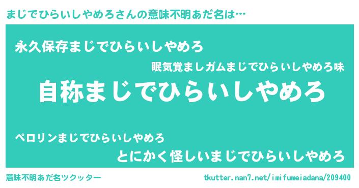 | ヒーロー風カッコイイあだ名 | 『最強戦士マジデヒライシヤメロ』 |