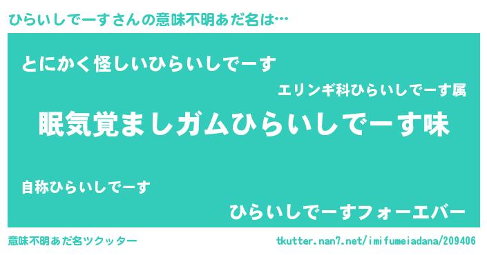 | 男性向けラノベタイトル風あだ名 | 『ひらいしでーすに滅ぼされるだけの簡単なお仕事です』 |