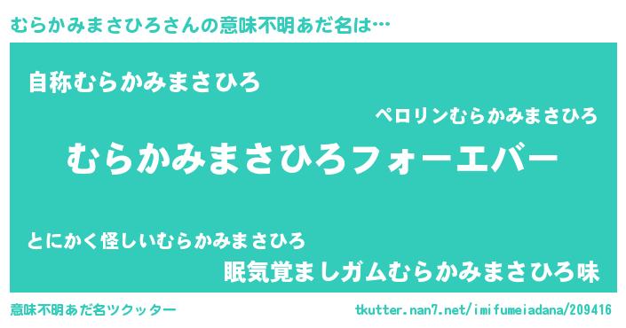| ファンタジー風あだ名 | 『エターナルムラカミマサヒロー』 |