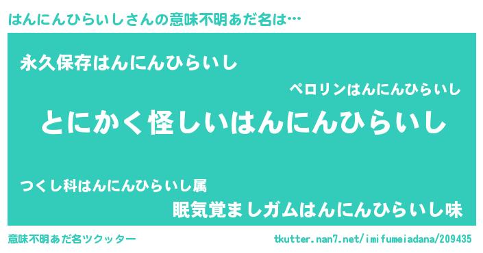 | ポケモン風あだ名 | 『ヒハンニンヒライシ』『ゼニハン』 |