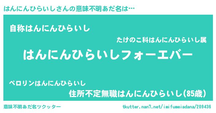| ピコ太郎風あだ名 | 『ピハ二郎』『ハコ四郎』『ハハ太郎』 |