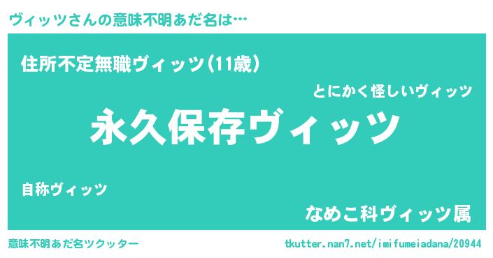 | ヘコむあだ名 | 『ヴィッツ(遠い目)』『ヴィを』 |