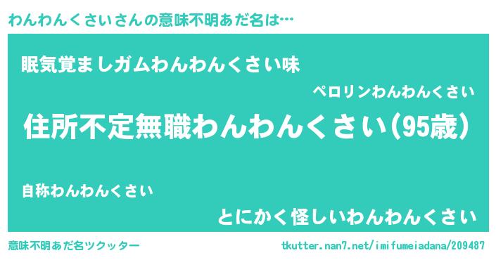 | 男性向けラノベタイトル風あだ名 | 『わんわんくさいに滅ぼされるだけの簡単なお仕事です』 |