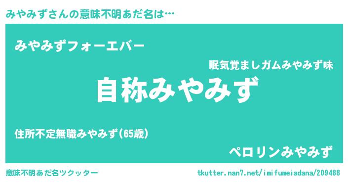 | 肩書あだ名 | 『みやみず閣下』『みやみず総理大臣』 |