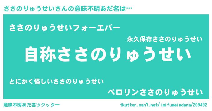 | 女子向けラノベタイトル風あだ名 | 『ささのりゅうせいなんてお断りですっ。』 |
