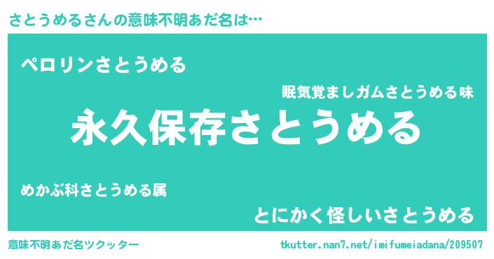 | ヘコむあだ名 | 『さとうめる(笑)』『さとにゅー』 |