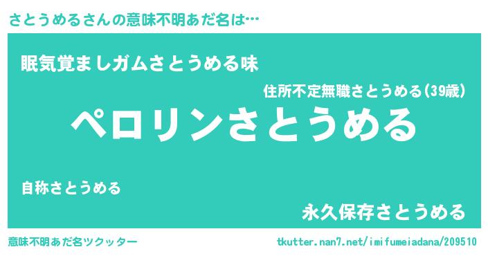 | 胡散臭い通販商品みたいなあだ名 | 『モテモテ間違いなし霊験あらたかなお札…その名も「さとうめる」』 |